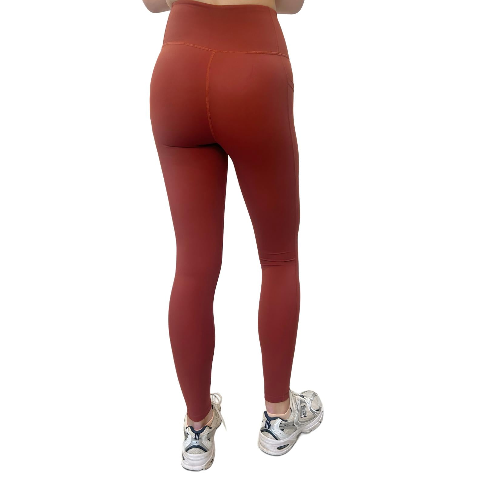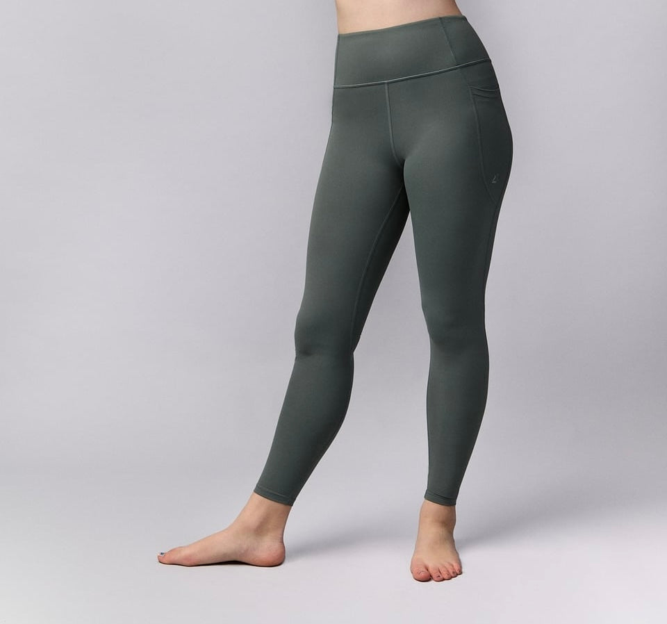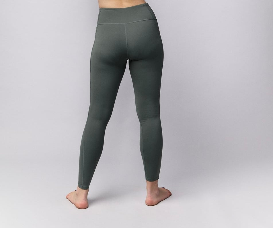 without compression, these leggings feature a high-waisted, no-roll waistband and a full-