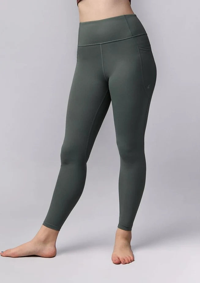 without compression, these leggings feature a high-waisted, no-roll waistband and a full-